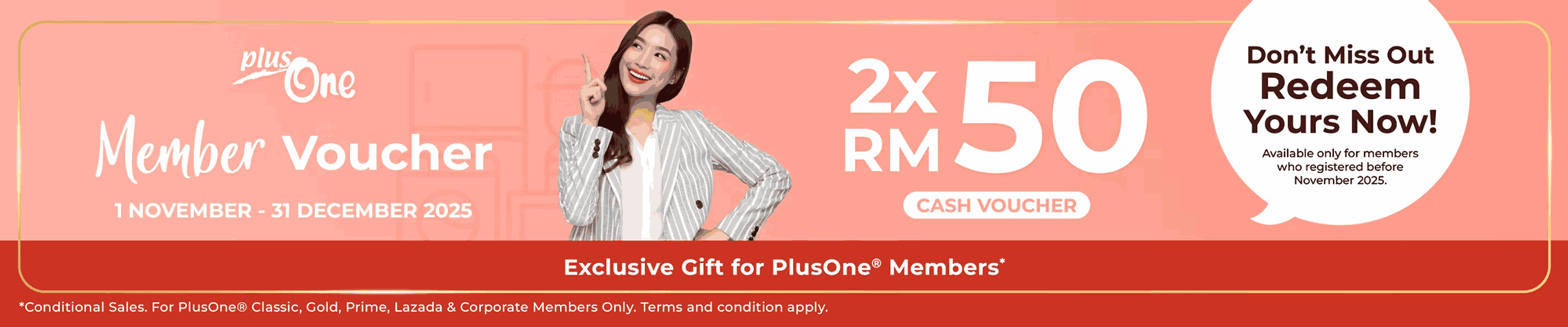 3. PlusOne Member Voucher is valid for purchases of RM250 or above in a single receipt only.