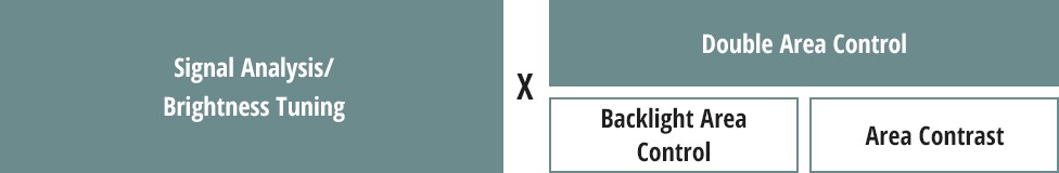 This enables the reproduction of tight blacks, shadows without blacking out, and realistic brightness and darkness down to the smallest detail. In addition, the "halo effect" has been reduced with the split backlight drive.