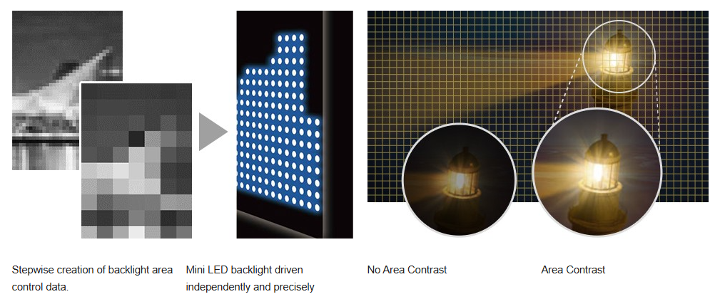 Thousands of Mini LEDs are controlled as backlights.