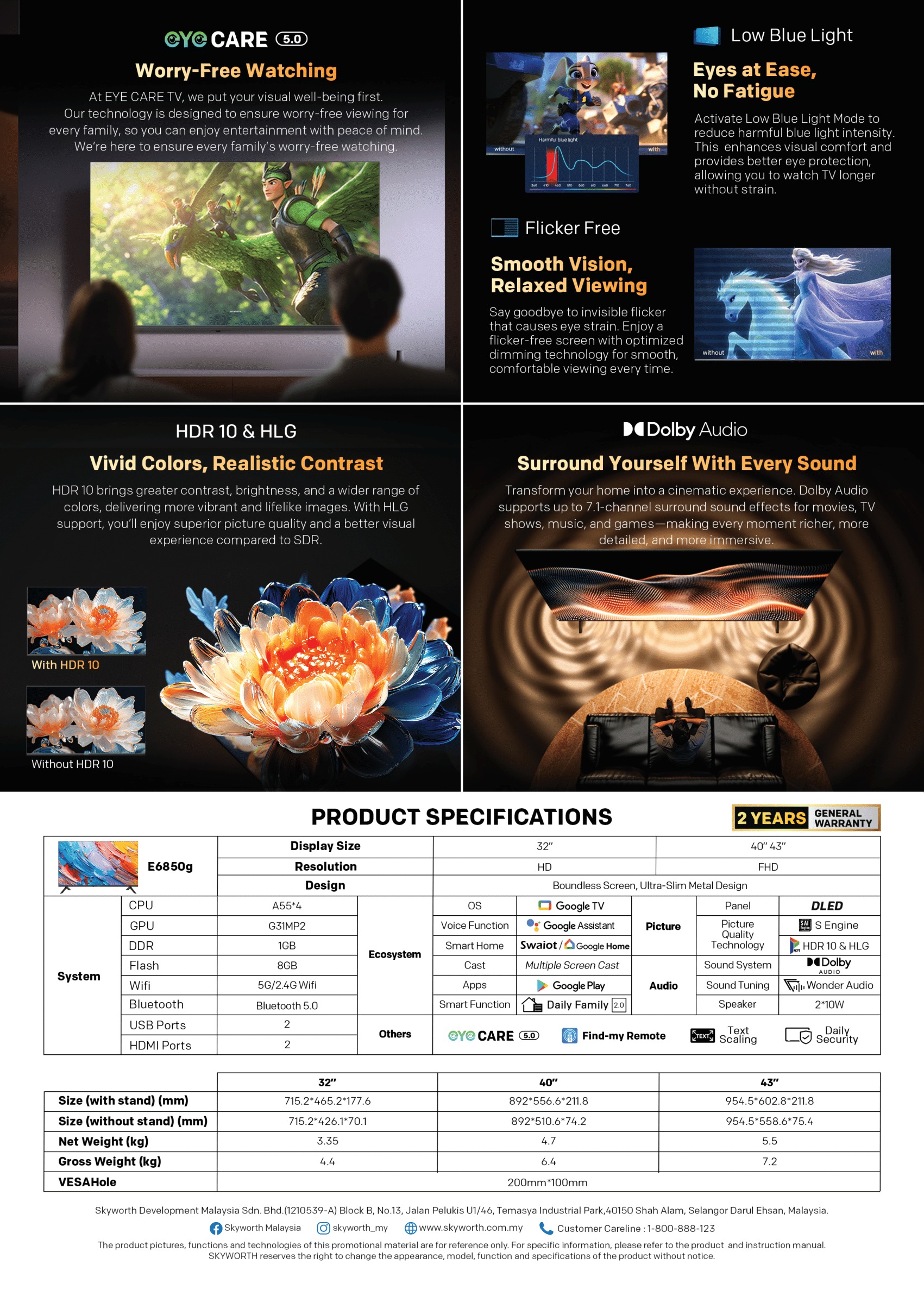 32″ – 43″ 2K E6850G Series FHD Google TV