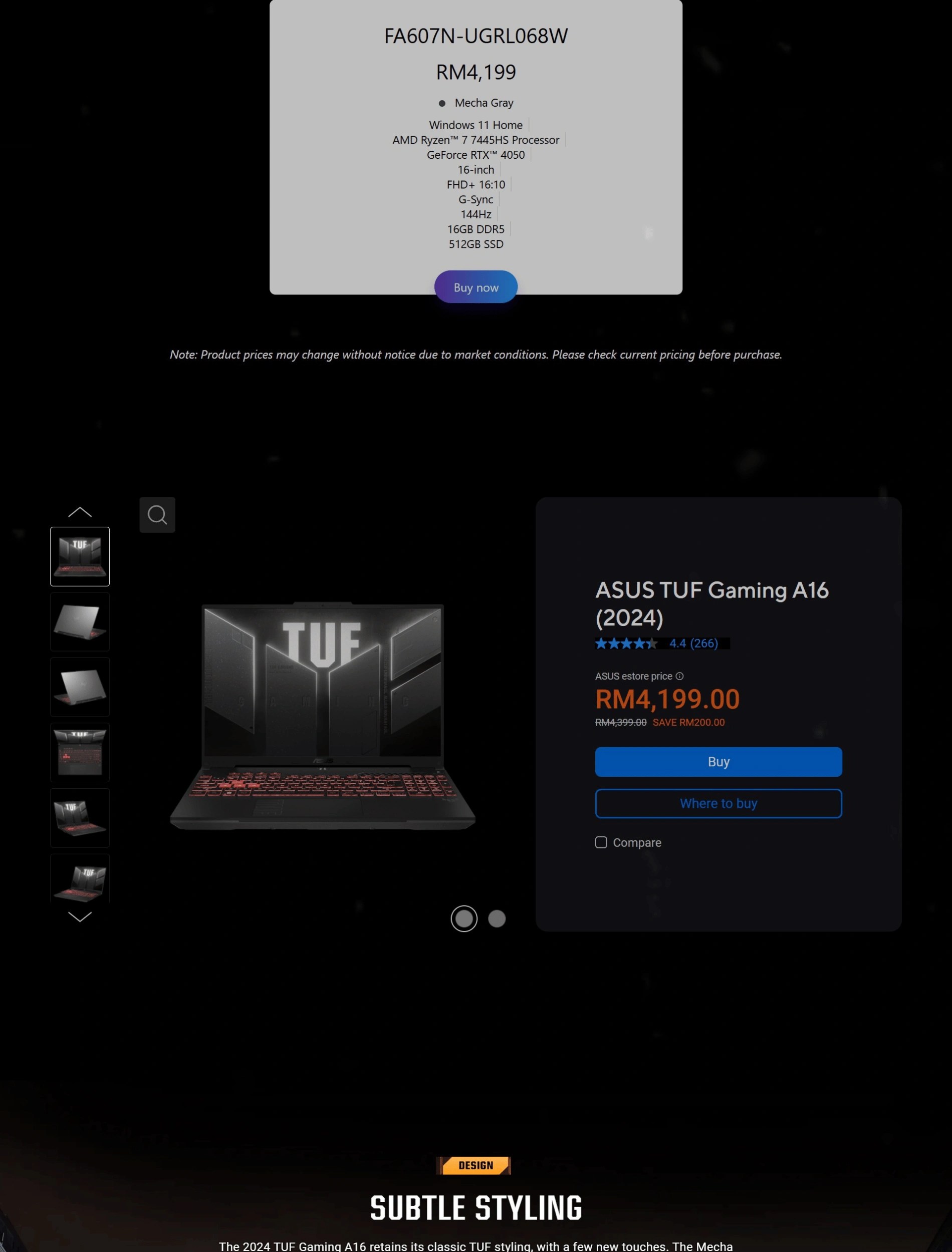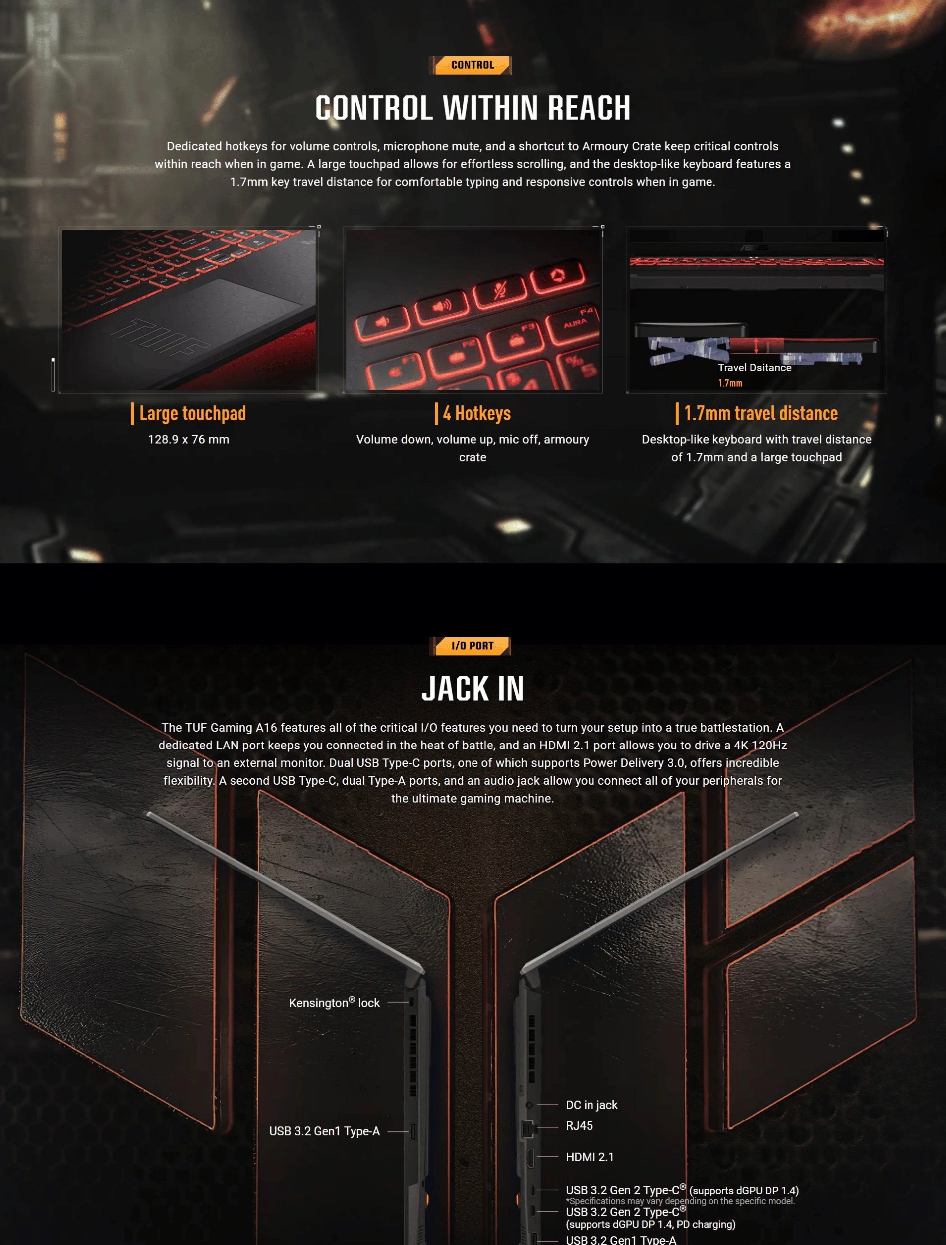 TUF Gaming A16 / AMD Ryzen™ 7 7445HS / 16GB RAM+512GB SSD / RTX™ 4050 / 16″ 144Hz