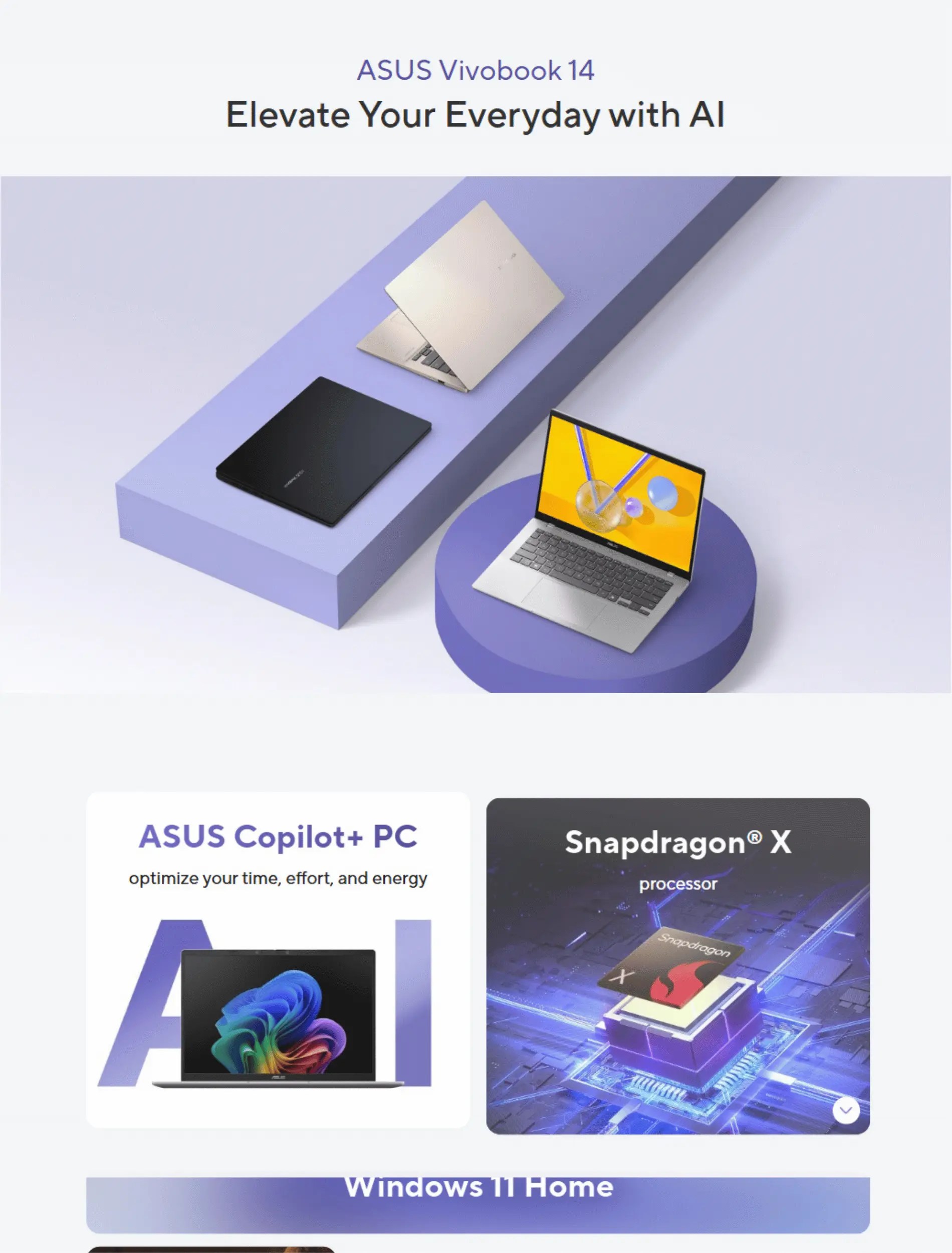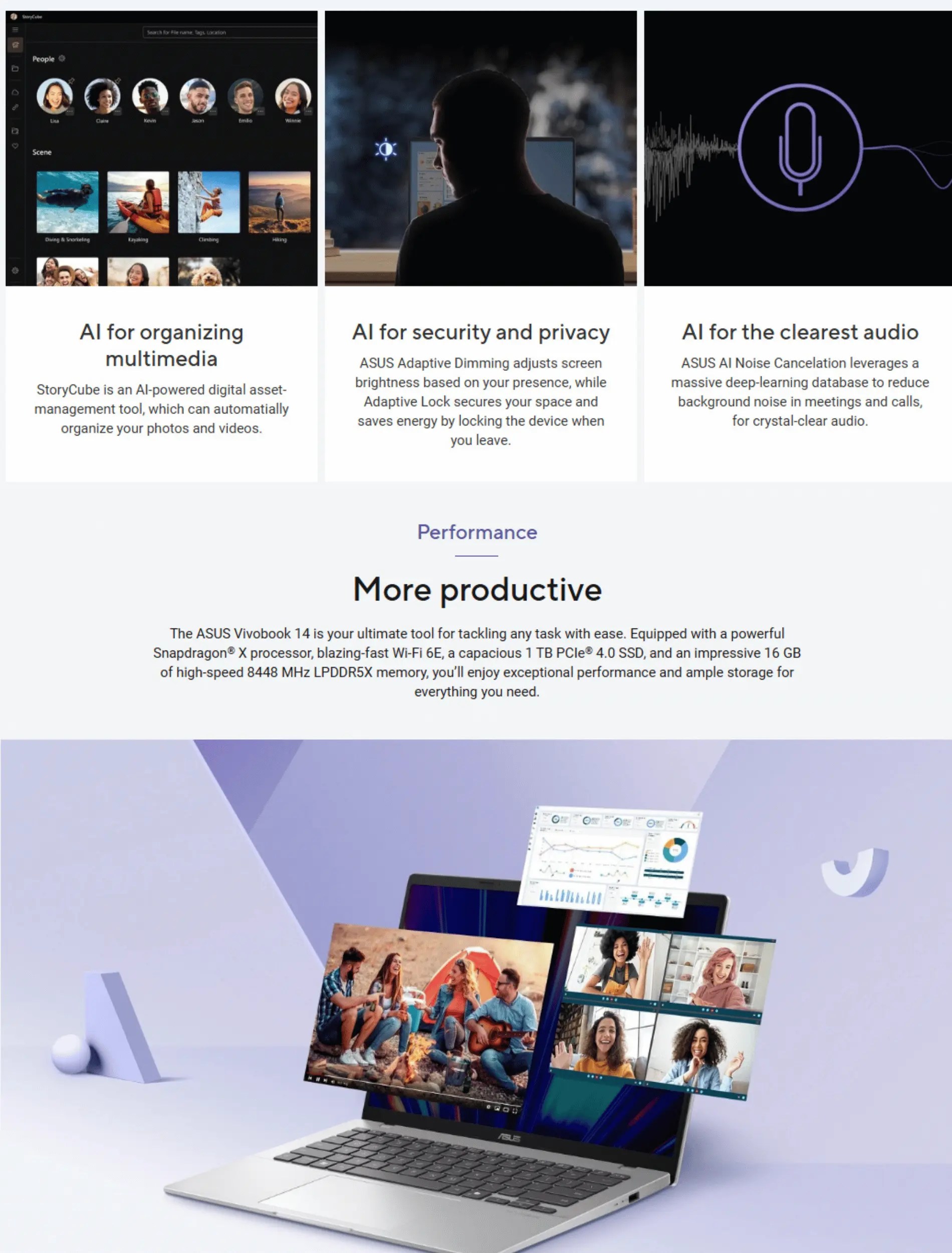Vivobook 14″ – Snapdragon X X1 26 100 Processor / 16GB RAM+1TB SSD / Office Preloaded + Microsoft 365 / 14” inch – Gold