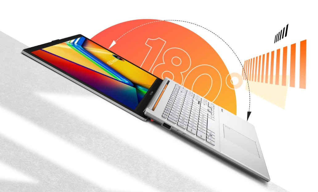 Vivobook Go 15 features a precision-engineered, 180° lay-flat hinge that makes it easy to share content or collaborate with others.
