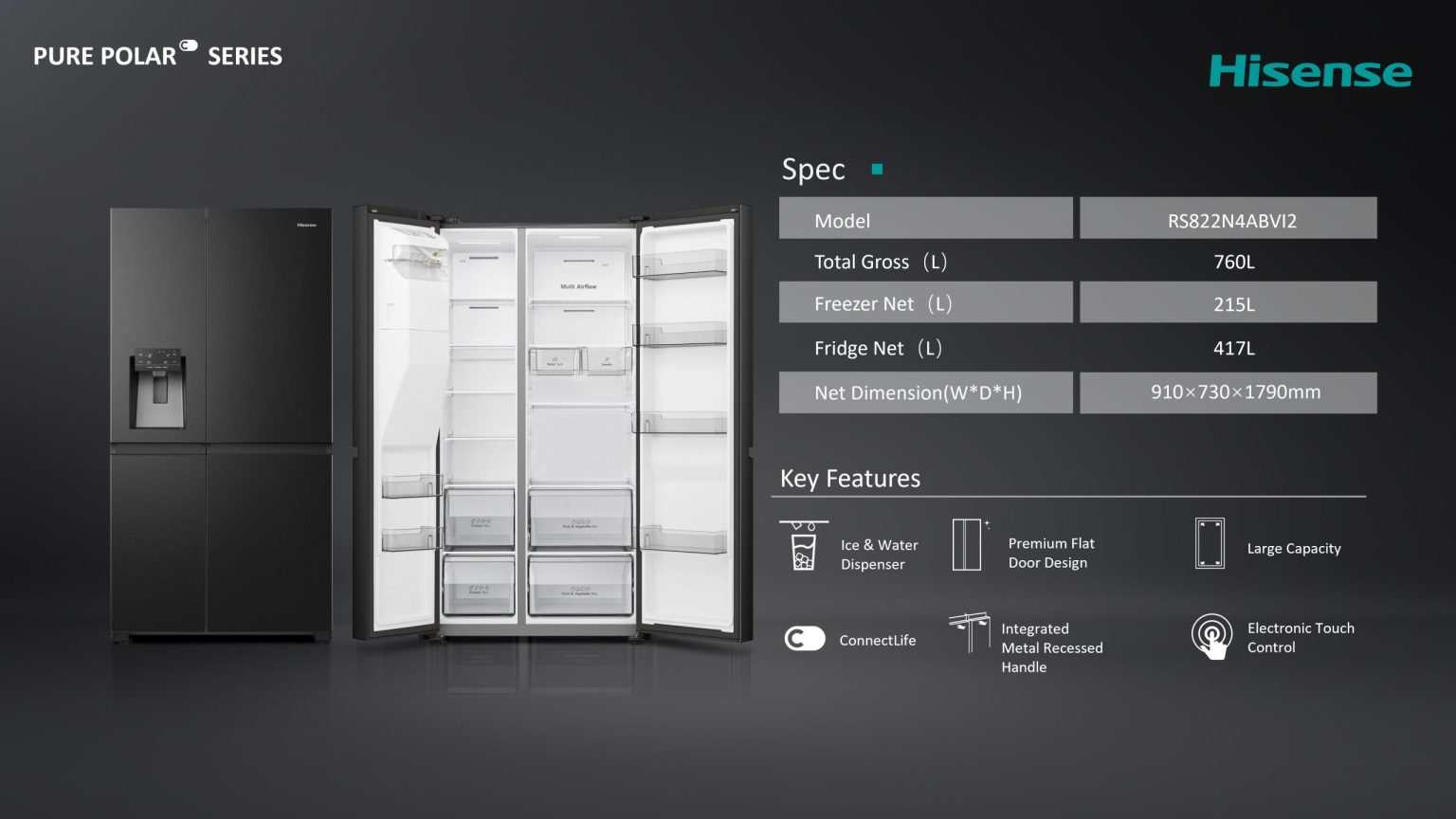 760L Side by Side Inverter Refrigerator Pure Polar Series