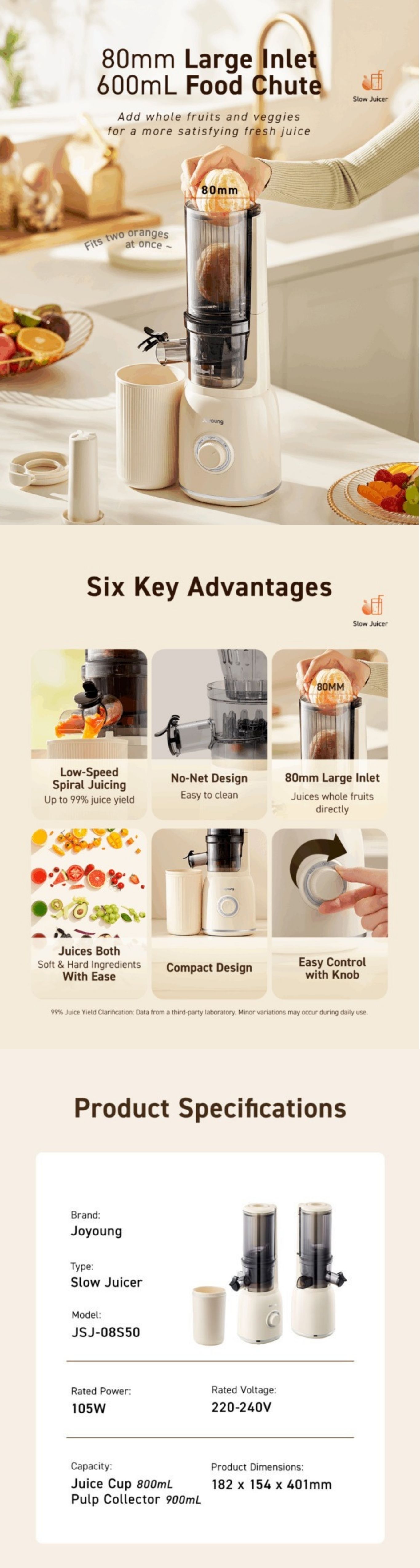 80mm Wide Inlet Net-Free Filter Slow Juicer