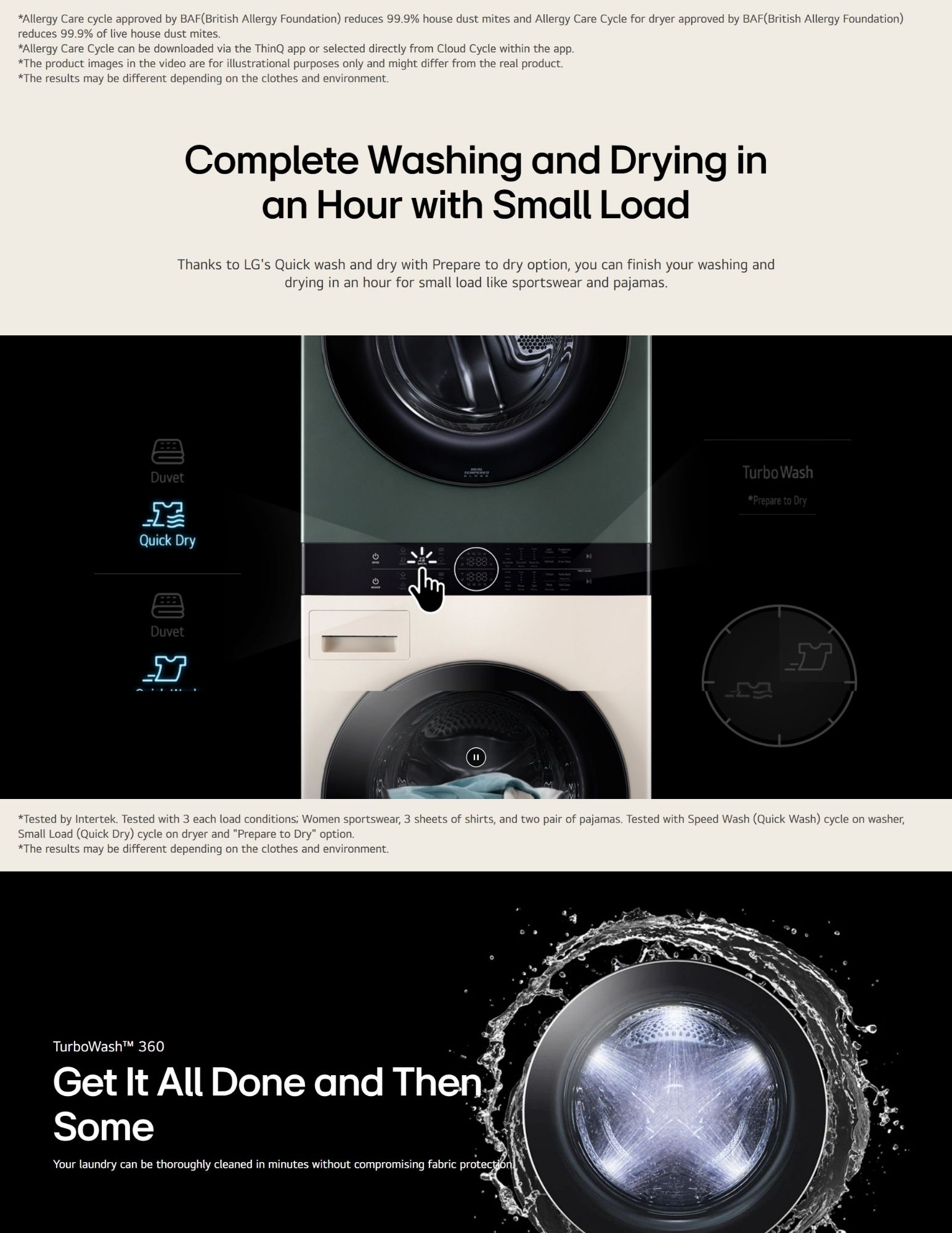 14kg/10kg Objet WashTower AllInOne Stacked Washer Dryer