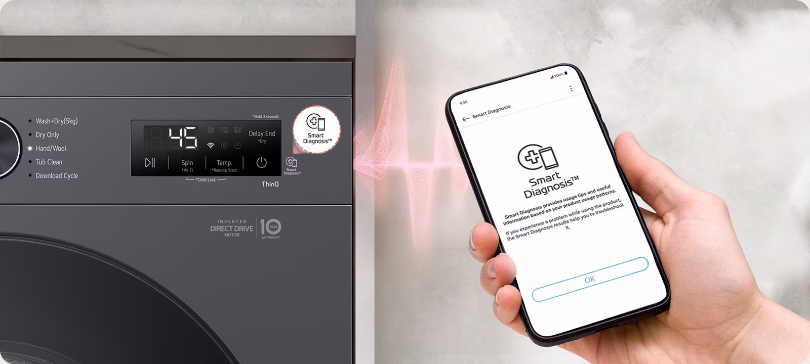 9/5kg Front Load Washer Dryer with with 6 Motion Inverter Direct Drive