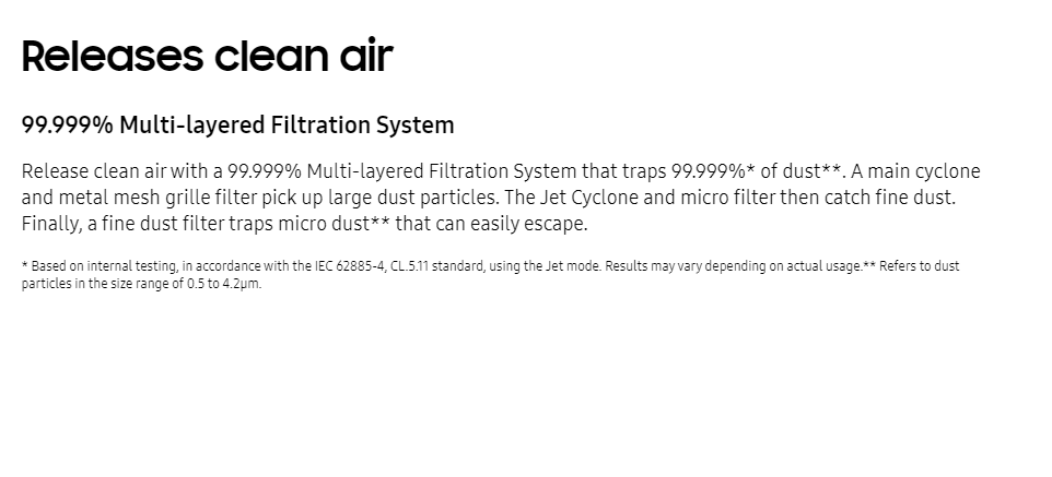* Based on internal testing, in accordance with the IEC 62885-4 CL.5.8 standard. Measured at the inlet of the non-accessorized tool, using Jet Mode and a battery that is fully charged. Results may vary depending on actual usage.** Based on internal testing in accordance with the IEC 60335-1 CL.10 standard.*** The 10 year warranty is limited to the Digital Inverter Motor only. Applies to all DIT models sold from January 2023.