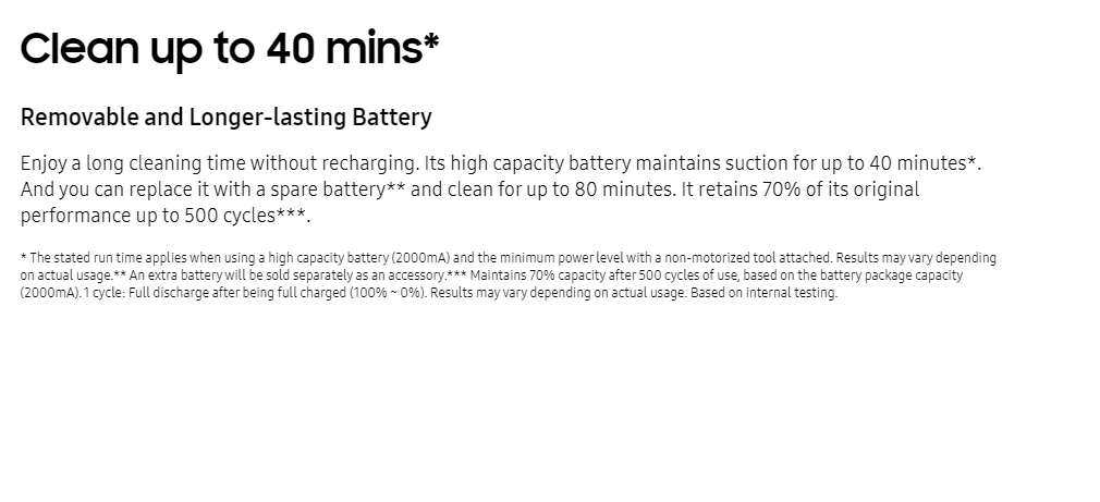 -Up to 40 min (Stated run time applies to the minimum power level with a nonmotorized tool attached.)