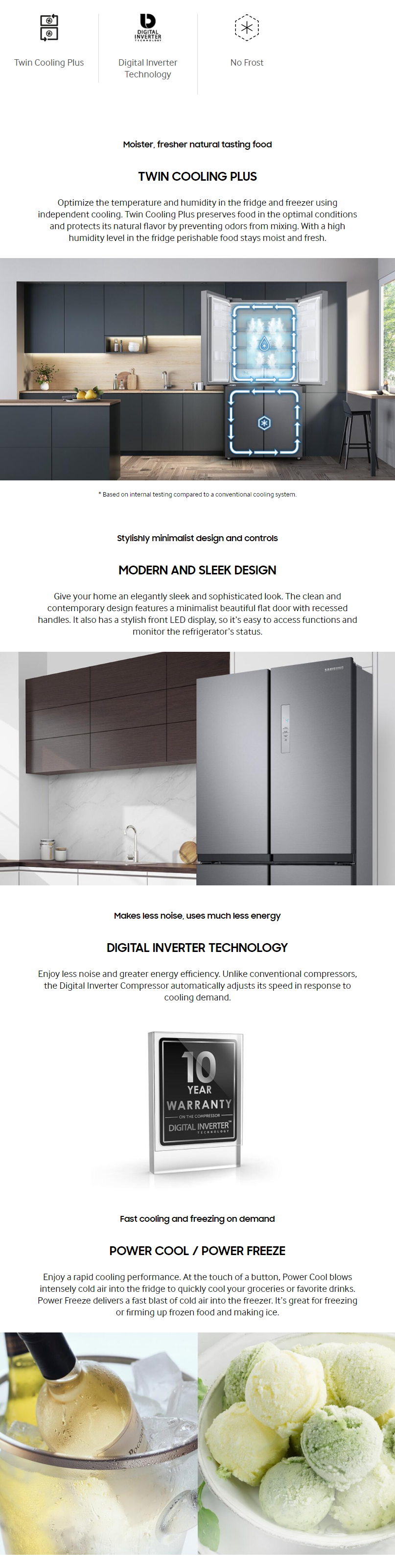 511L French Door Fridge with Twin Cooling Plus Gentle Black Matt RF48A4000B4