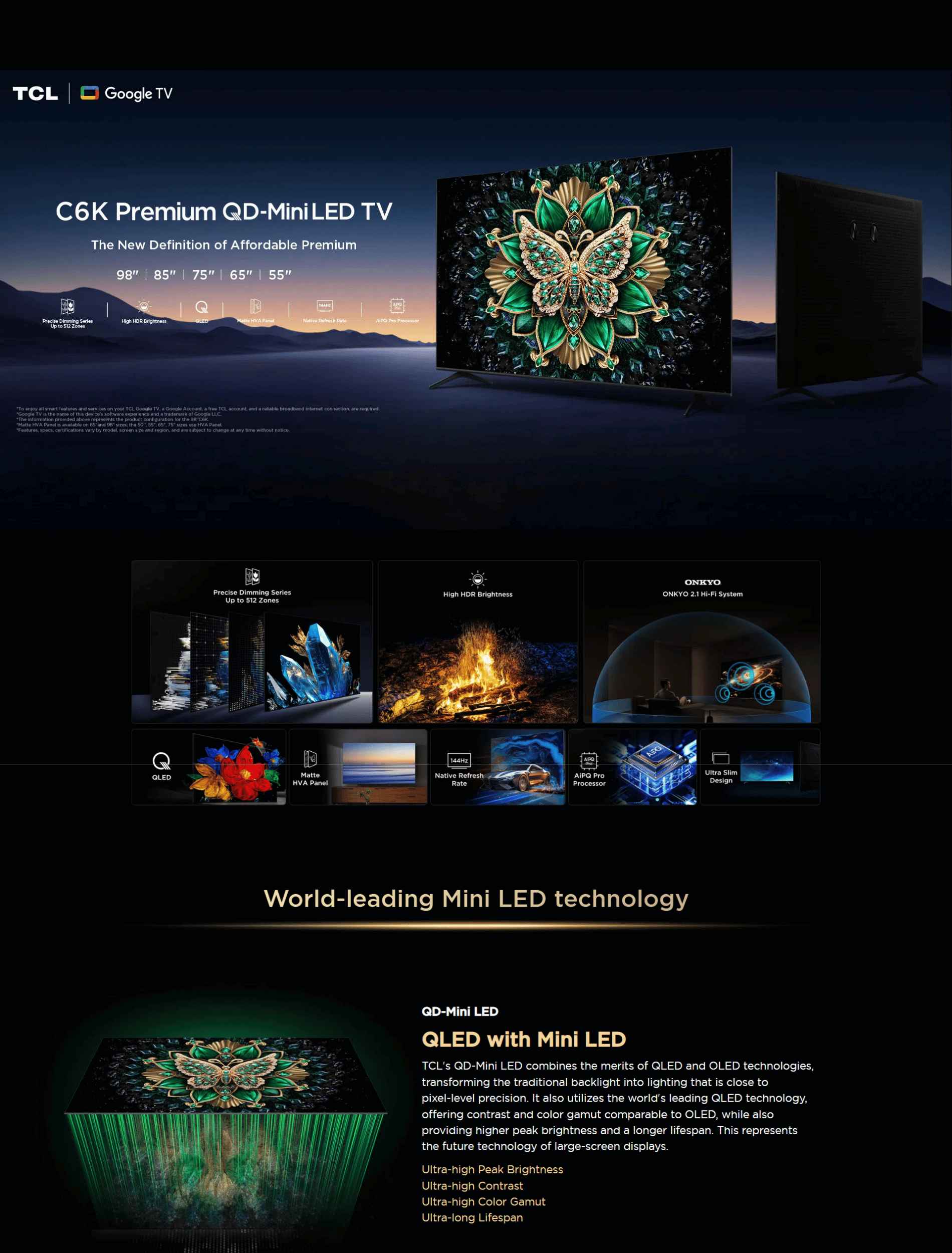 55″ 65″ 75″ 85″ 98″ C6K Premium QD-MiniLED TV
