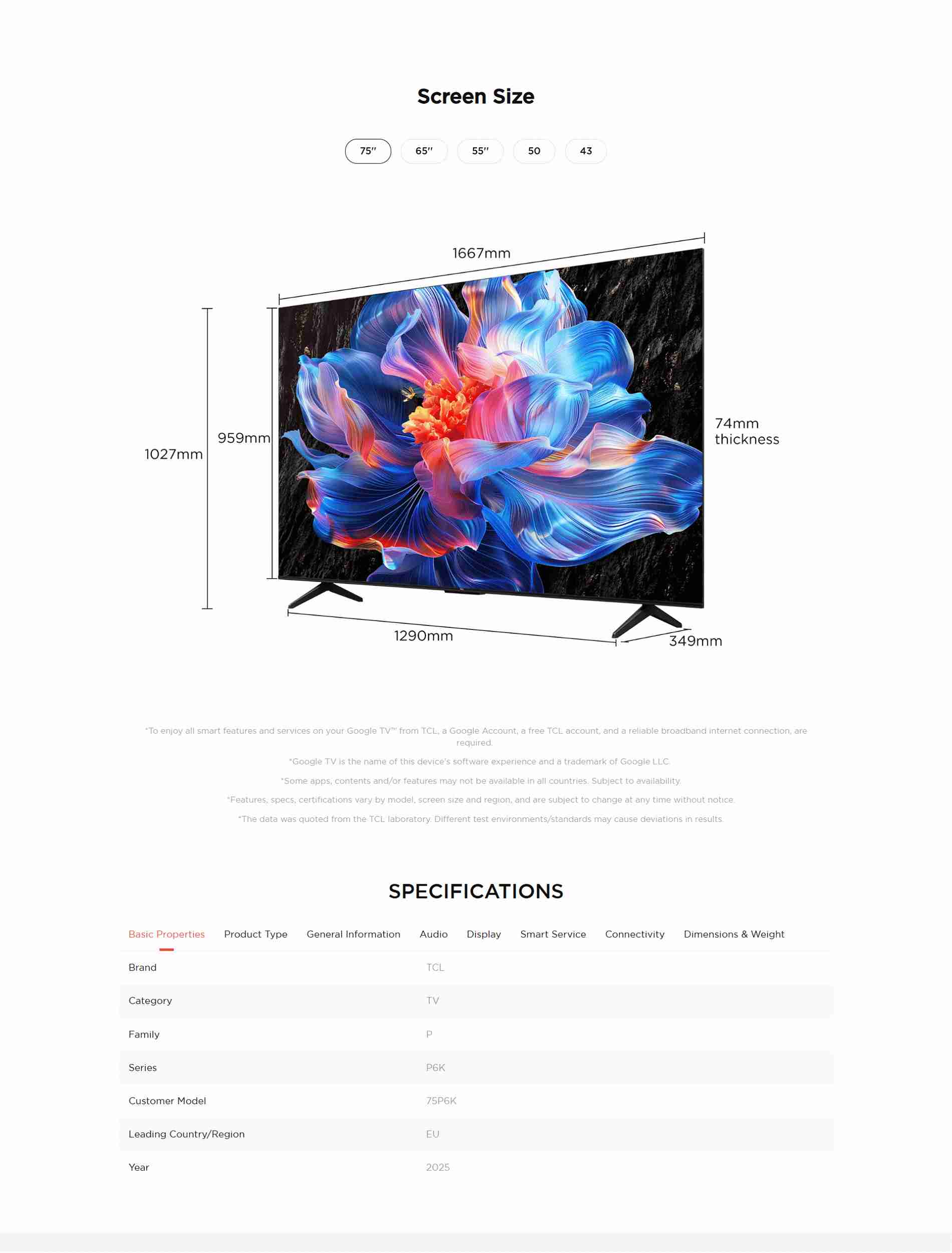 55″ 65″ 75″ P6K Series 4K HDR TV